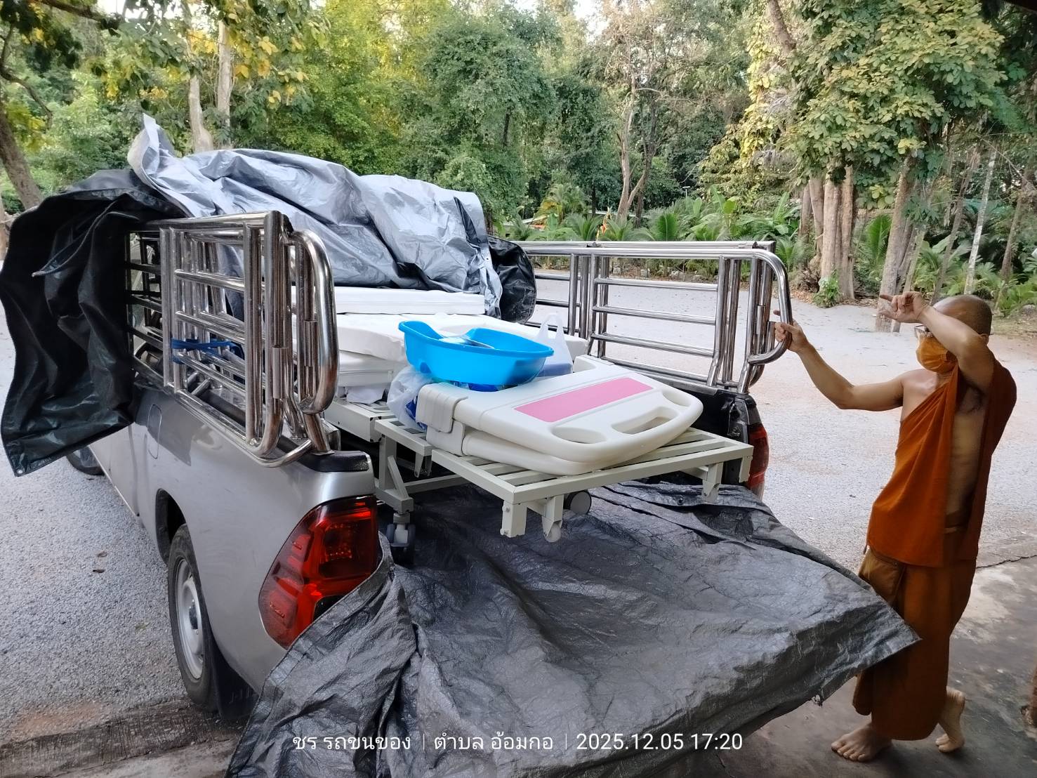 ขนส่งเตียงผู้ป่วย เครื่องผลิตออกซิเจน และของใช้ต่างๆของผู้ป่วย เจ้าของเตียงเก่าให้ขนไปเพื่อทำบุญ เอาไปให้ผู้ป่วยซึ่งเป็นแม่ชีที่วัดใช้งานต่อ ขนจาก ศาลายา พุทธมณฑล นครปฐม ขนไป วัดป่าเทพพิทักษ์ อ้อมกอ บ้านดุง อุดรธานี