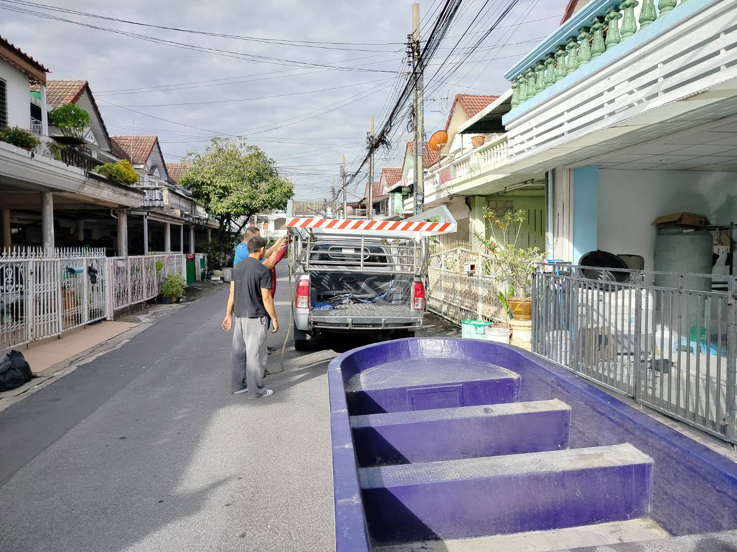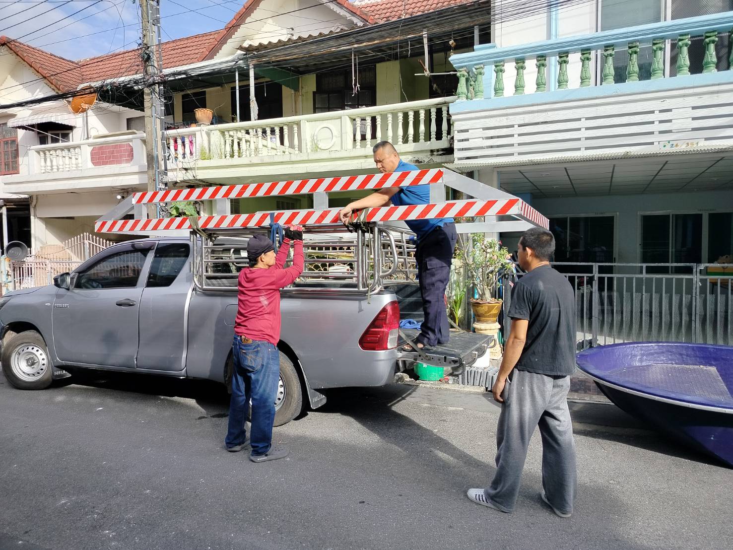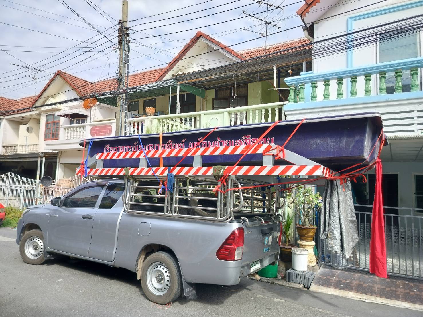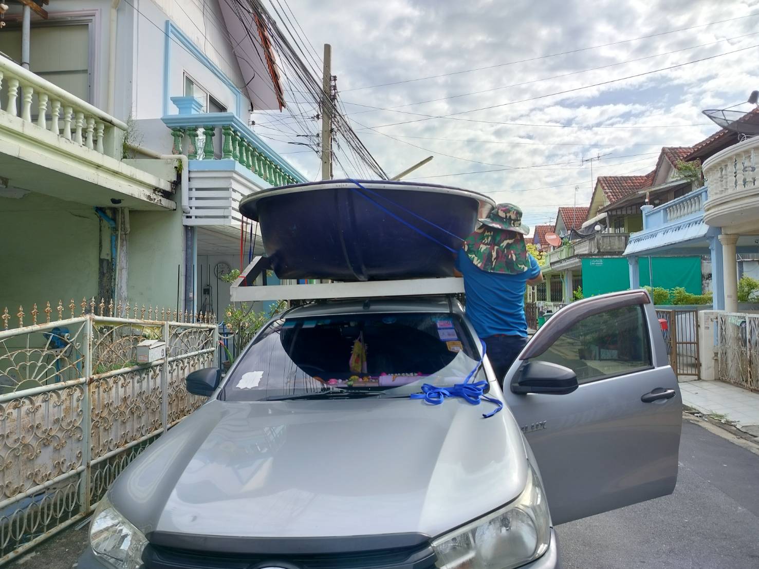 ทีมงานเราไป4คน รถ2คัน ขนส่งเรือกู้ภัยขนาดใหญ่ กว้าง1.80เมตร ยาว5.80เมตร และอุปกรณ์ของใช้เพื่องานทำบุญอื่นๆ ขนจาก ถนนวิภาวดี ดอนเมือง กทม. ขนไป สระกระโจม ดอนเจดีย์ สุพรรณบุรี